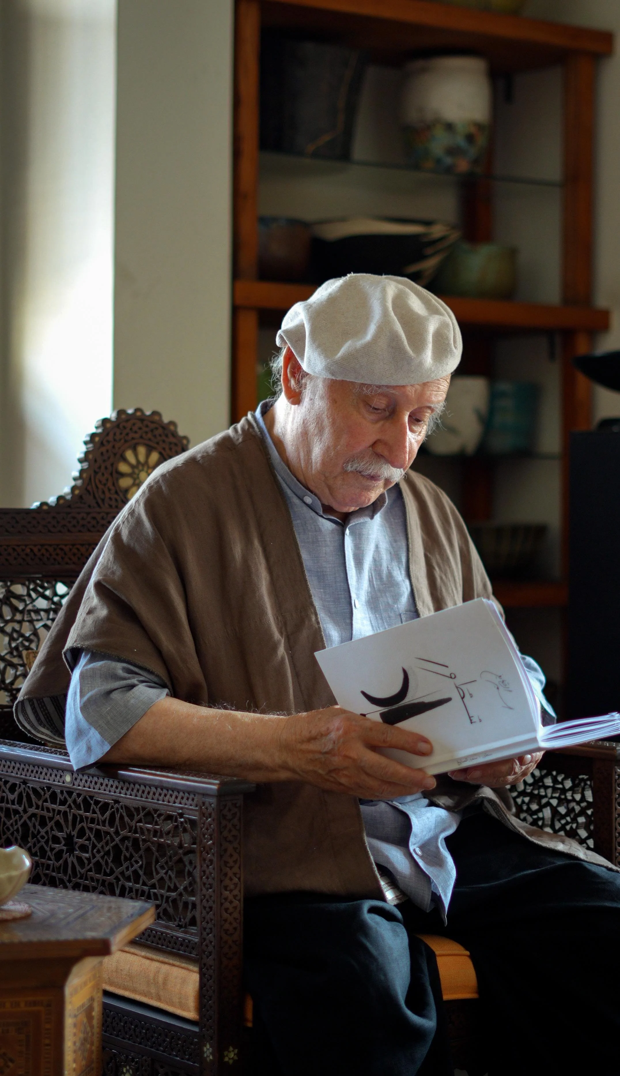 Recognized as one of the most prominent contemporary Arab calligraphers, he was honored at the first Sharjah Biennial of Arabic Calligraphy. He is the author of Islamic Art: A Contemplative Reading into Its Philosophy and Aesthetic Characteristics, and has published several poetry collections and critical studies. Since 2010, he has collaborated with Plan BEY, pushing the boundaries of the artist book, art prints, and multiples.